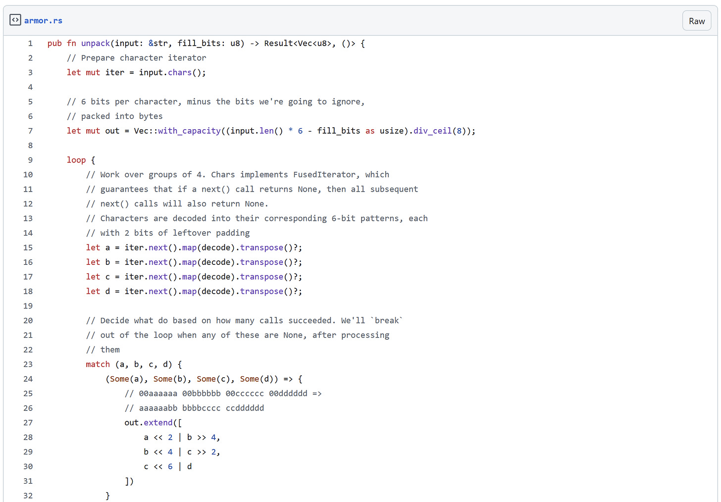 This is a bit much for a bash script, so instead we can write it as a a Rust module (click on the caption for the full link).