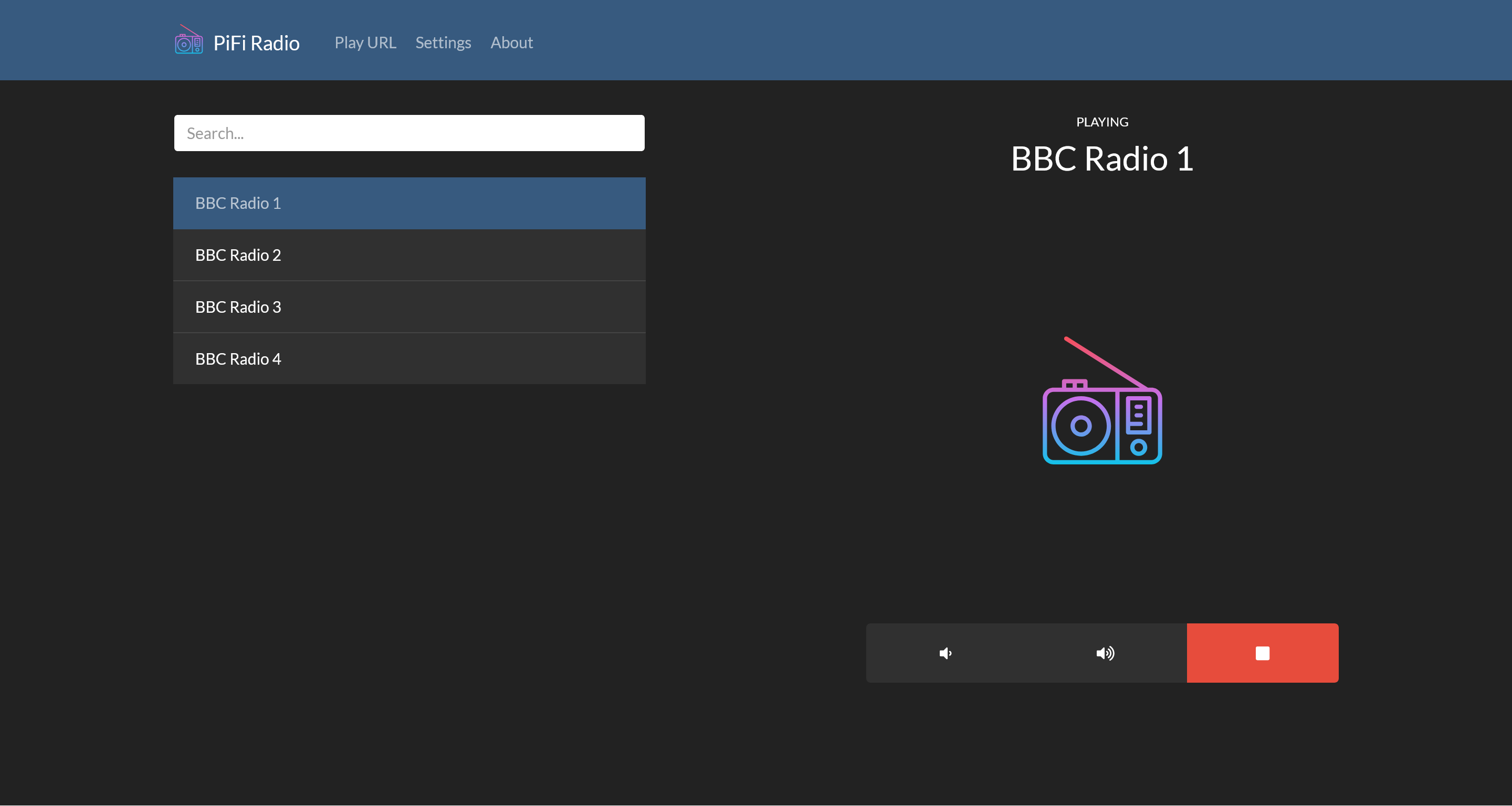 I’ve been setting up a whole-audio system with snapcast. One of the services I was excited to come across was pifi-radio. It’s been archived by the owner, but it installed fine alongside mpd following their instructions on a recent Debian version, and has a lovely UI: